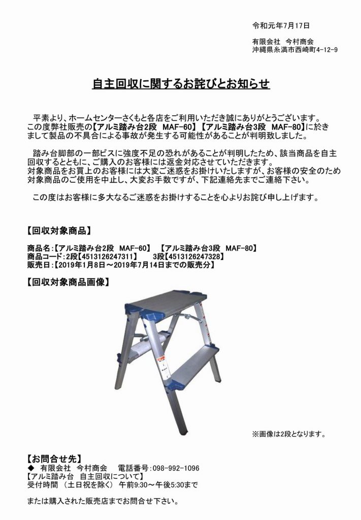 【アルミ踏み台2段 MAF-60】にて不具合が発生致しました。