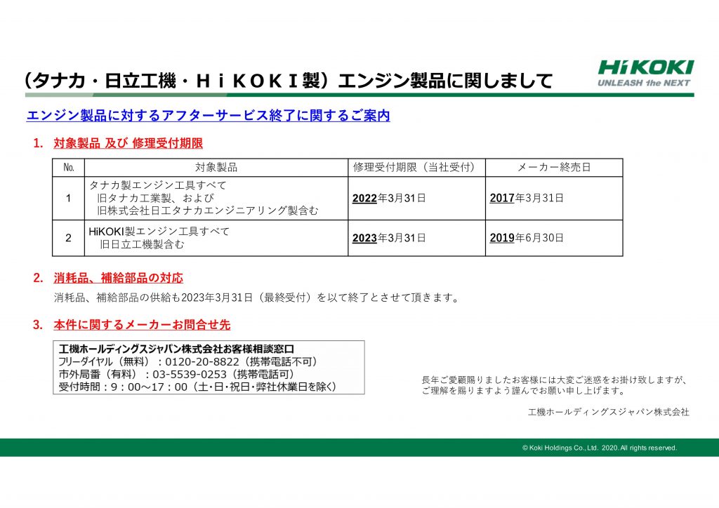 > (タナカ・日立工機・HiKOKI製)エンジン製品に関して