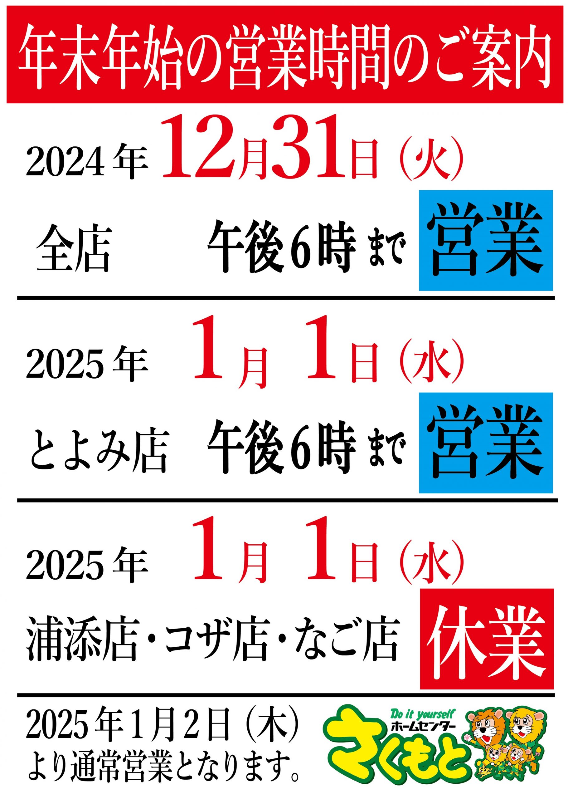 浦添・コザ・とよみ店 午前10時~午後5時まで