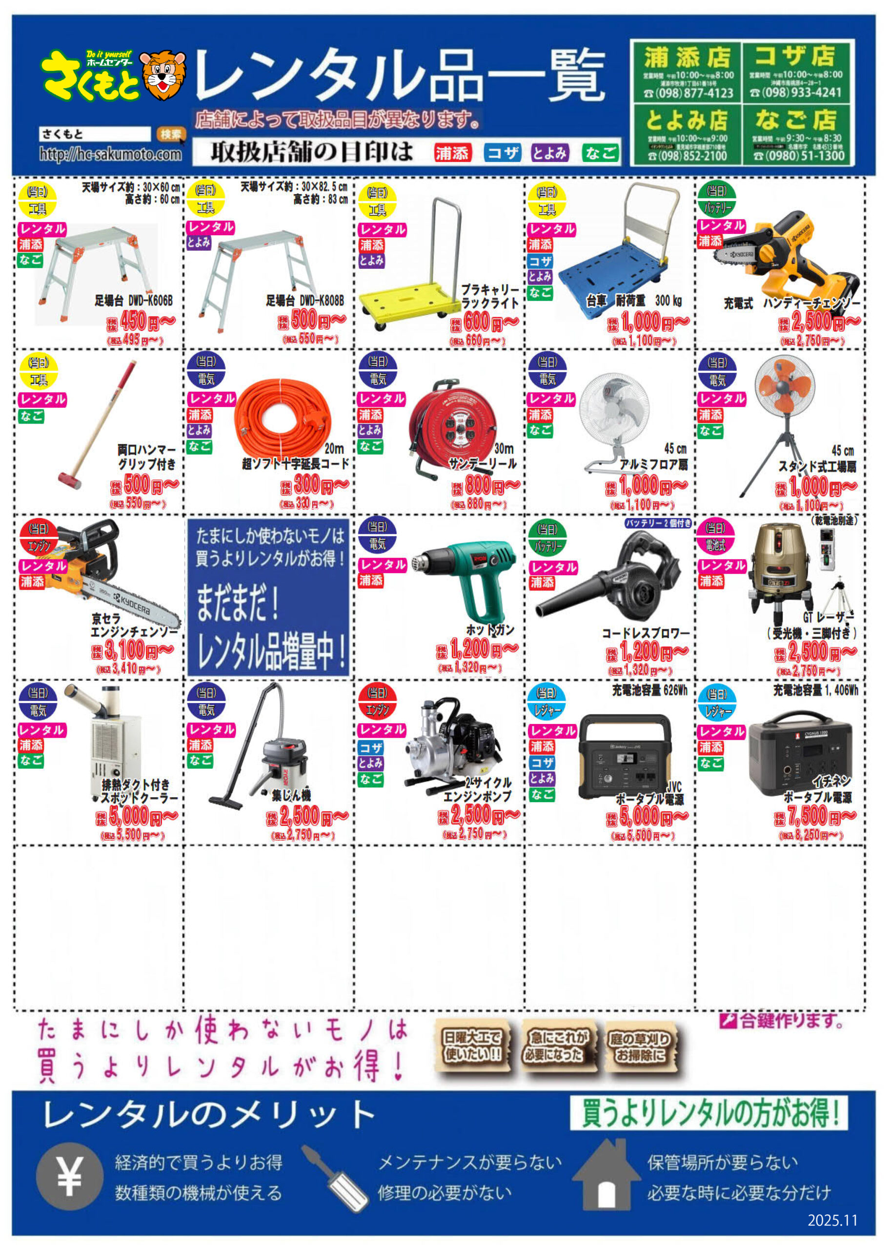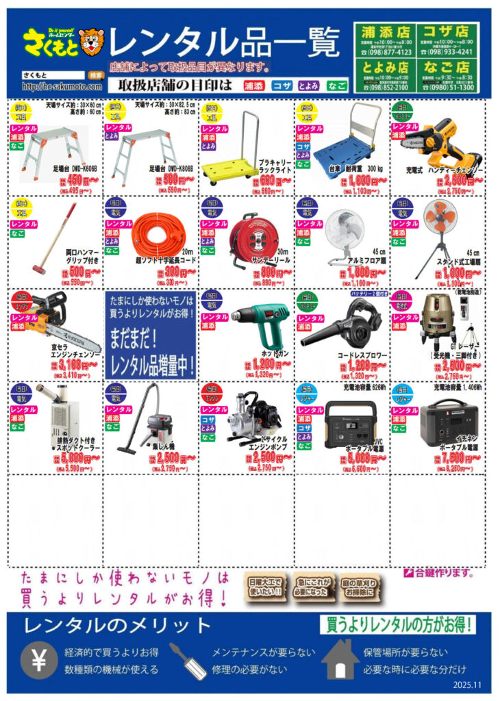 全店にて「レンタル」当日料金で1泊2日借りられる!!
