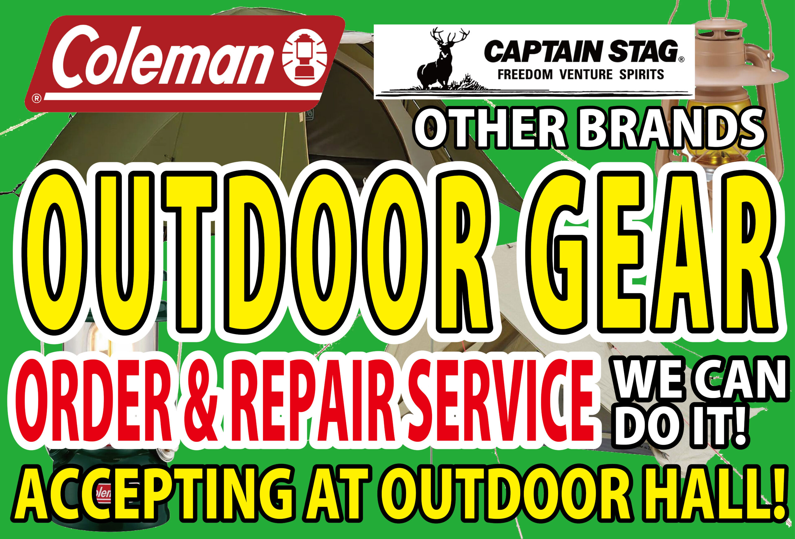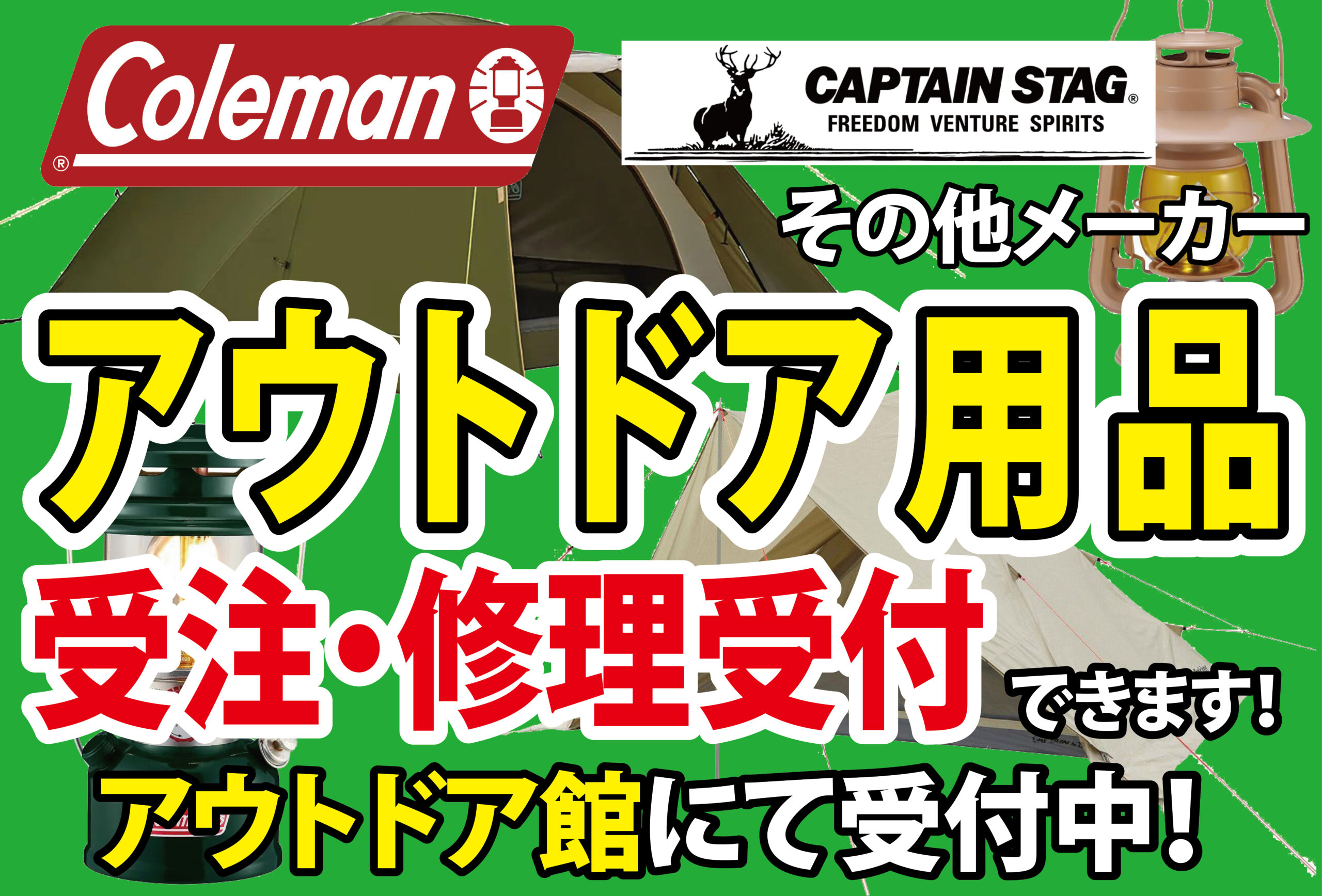 アウトドア用品受注・修理受付できます