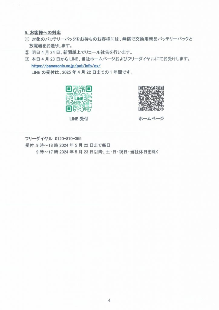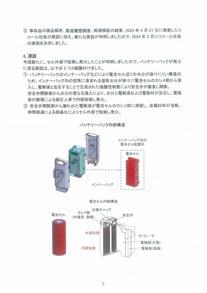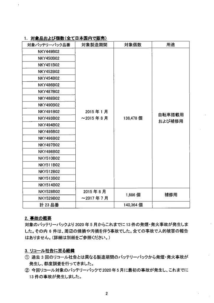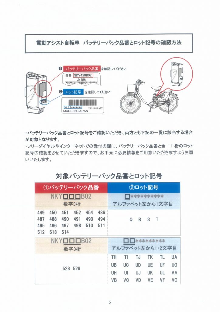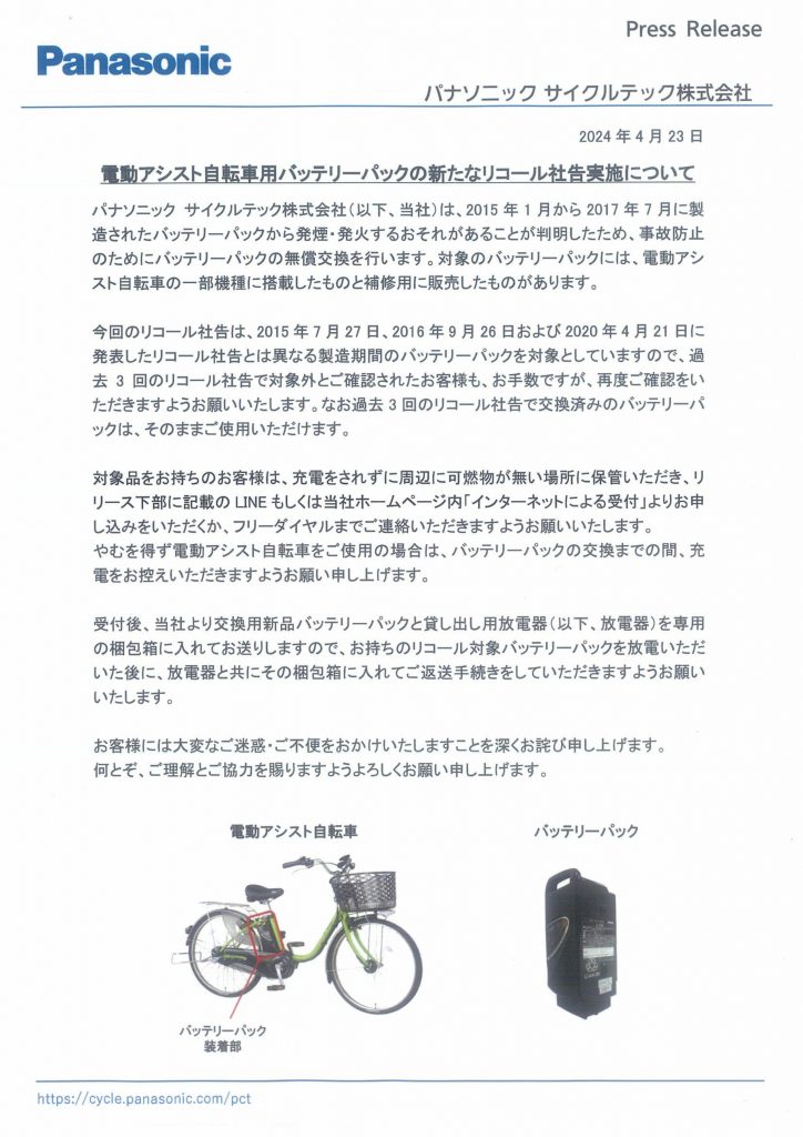 パナソニック電動アシスト自転車用バッテリーパックの新たなリコール社告実施について