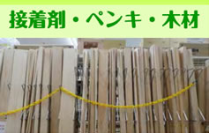 各種接着剤・各種テープ・ペンキ・ハケ・充填剤・木材・ベニヤ 等